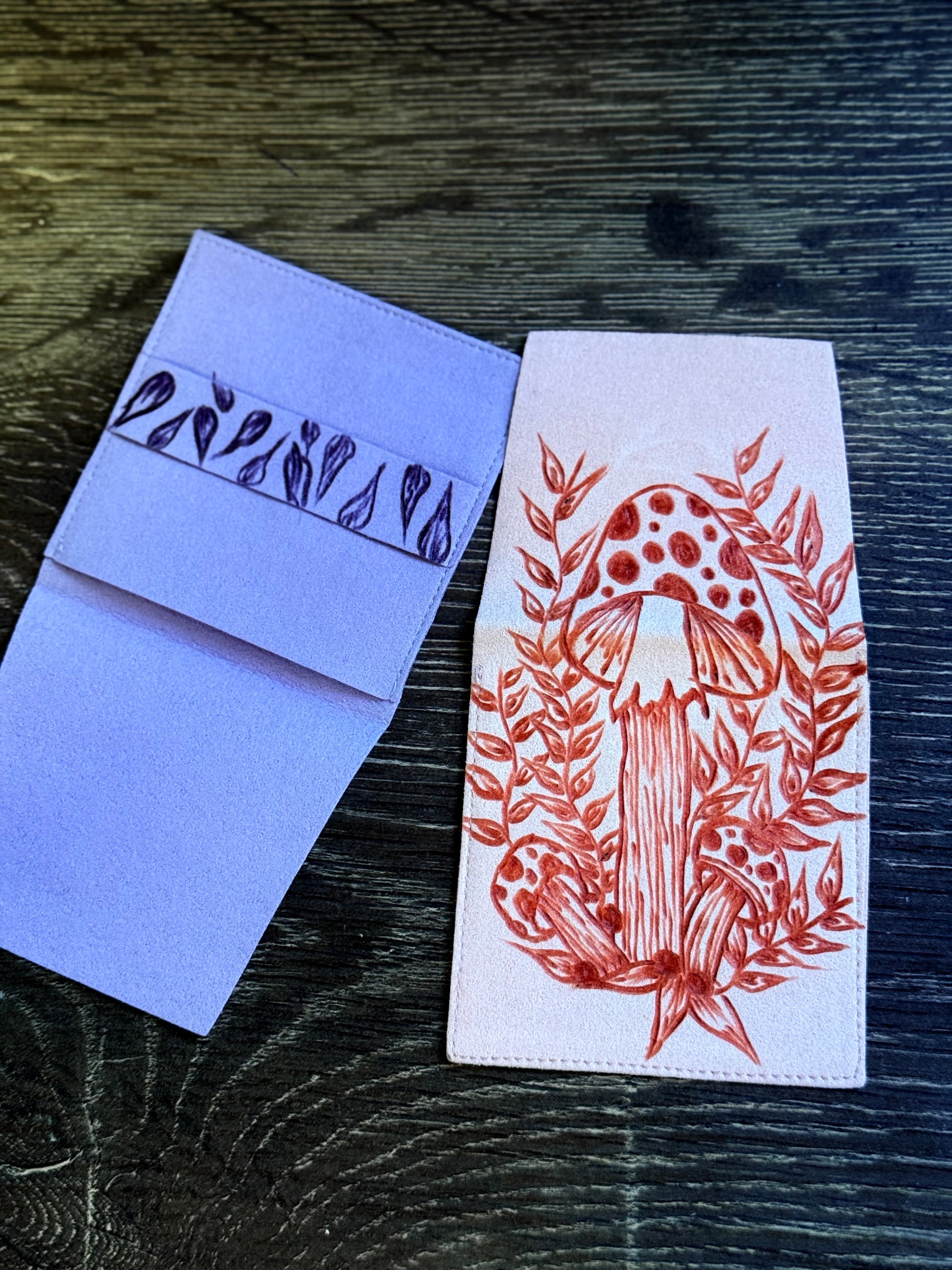 Hand-burned with care onto soft vegan suede, each pouch offers a safe and stylish way to store your jewelry when it’s time to take it off. Whether you’re diving into a creek to cool off, hitting the beach, road tripping, or just tackling the daily washing up, it keeps your rings and small treasures protected from loss or damage.